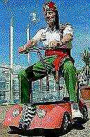 Lawson's company, MicroVEH, offers two basic models, a mini-hot rod and a mini-sports car. The four-wheeled vehicles are slightly smaller than bumper cars, and are equipped with a raised motorcycle-style handlebar and seat. They can go about 22 km/h (up to 45 km/h if they're souped up).